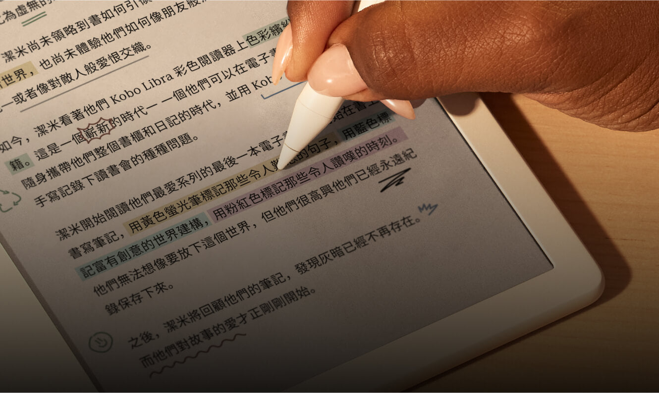 在指定型號的電子書閱讀器上手寫標記您的電子書、筆記本和PDF